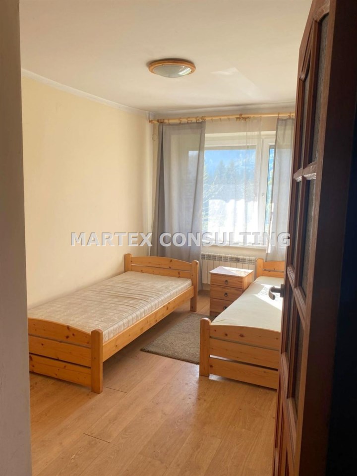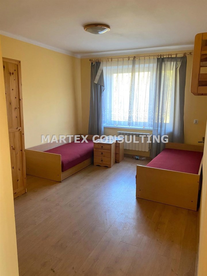Piętro: 2 sypialnie, łazienka, przestronny salon z kominkiem połączony z częścią jadalnianą i kuchnią, dwa balkony z czego jeden z nich rozciąga się wzdłuż całej fasady domu, oferując zachwycający widok na wschodnio-południową panoramę Istebnej i okoliczne góry.