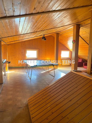 Piętro: 2 sypialnie, łazienka, przestronny salon z kominkiem połączony z częścią jadalnianą i kuchnią, dwa balkony z czego jeden z nich rozciąga się wzdłuż całej fasady domu, oferując zachwycający widok na wschodnio-południową panoramę Istebnej i okoliczne góry.